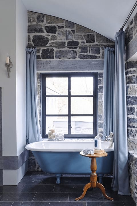 Slide a stool next to the bathtub. Not only will the extra surface space help with organization, but it's also a great way to make the whole space feel more luxe.