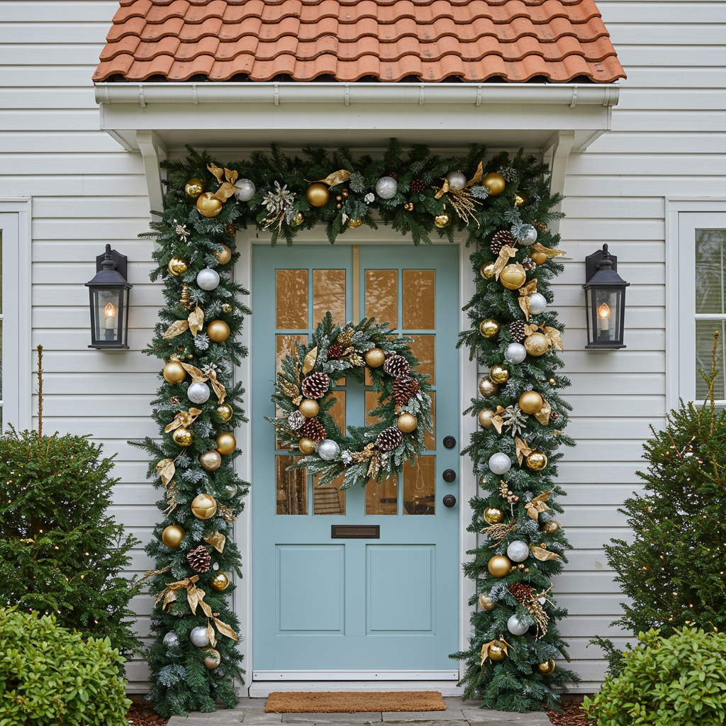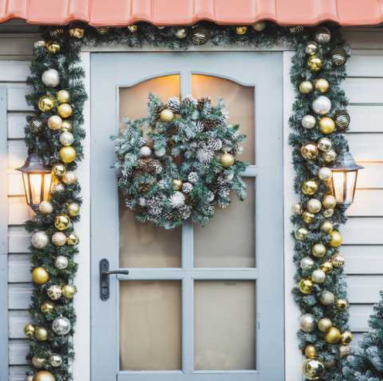 Want instant curb appeal? Outline your door with a bauble-packed garland and complete the look with a matching wreath. Your guests (and Santa!) will be in the holiday spirit before they even step inside.Kylie Fitts