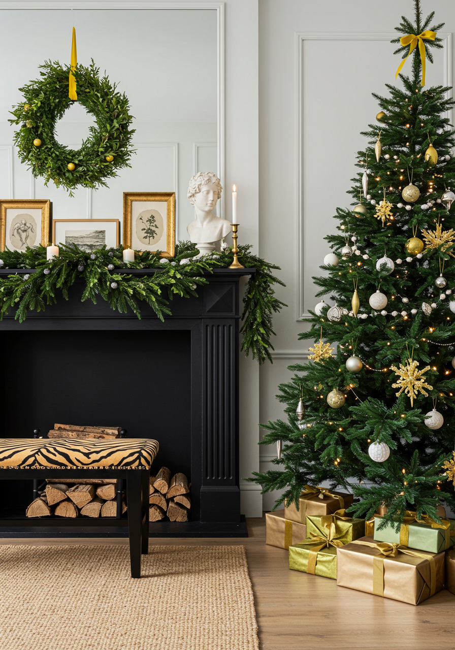 We love how artist and designer Josh Yöung ditched the expected Christmas color combo of red and green for one of yellow and white. Not only does it serve as a unified, neutral scheme, the subtle splashes of vitamin-C hues are the perfect antidote to any winter blues.Sarah Bartholomew