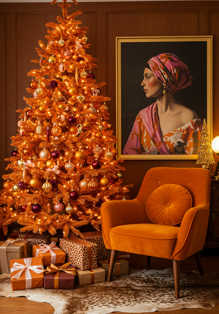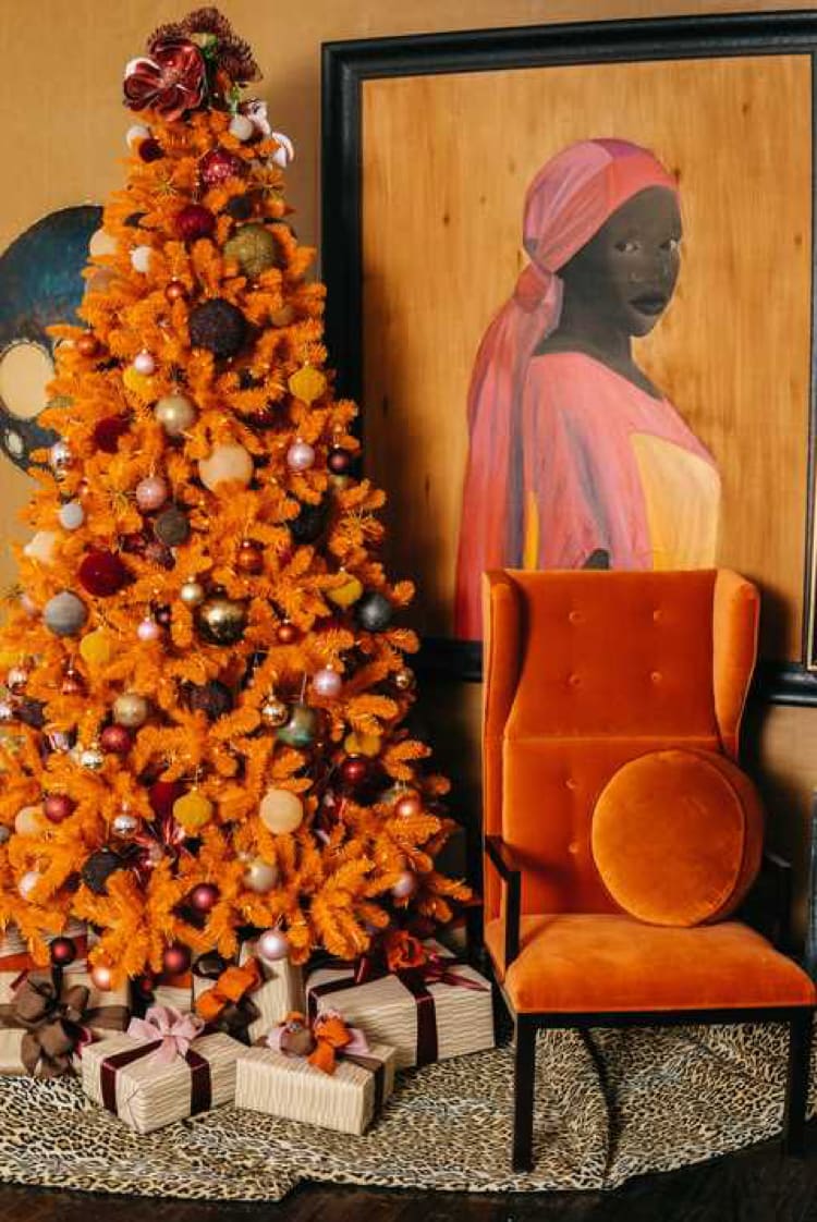 Colorful Christmas trees are a surefire way to add some retro appeal to your holiday decor, and we’re especially fond of this unusual tangerine one in designer Michel Smith Boyd’s home. The bold choice lends a surprisingly neutral look in the context of the rest of the room, while the leopard-print tree skirt adds a dash of wild fun. Orange you glad you spied this idea?Anastasiia KrivenokGetty Images