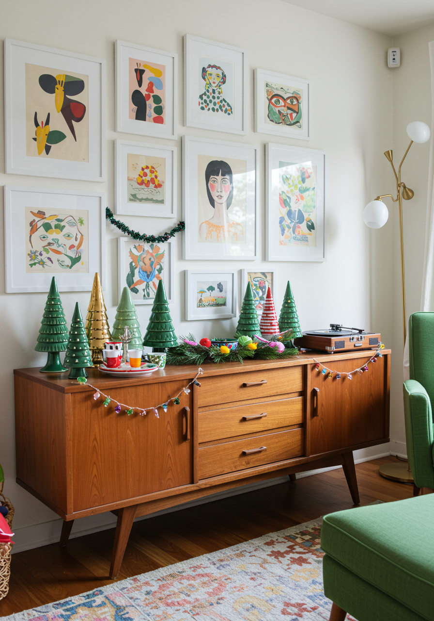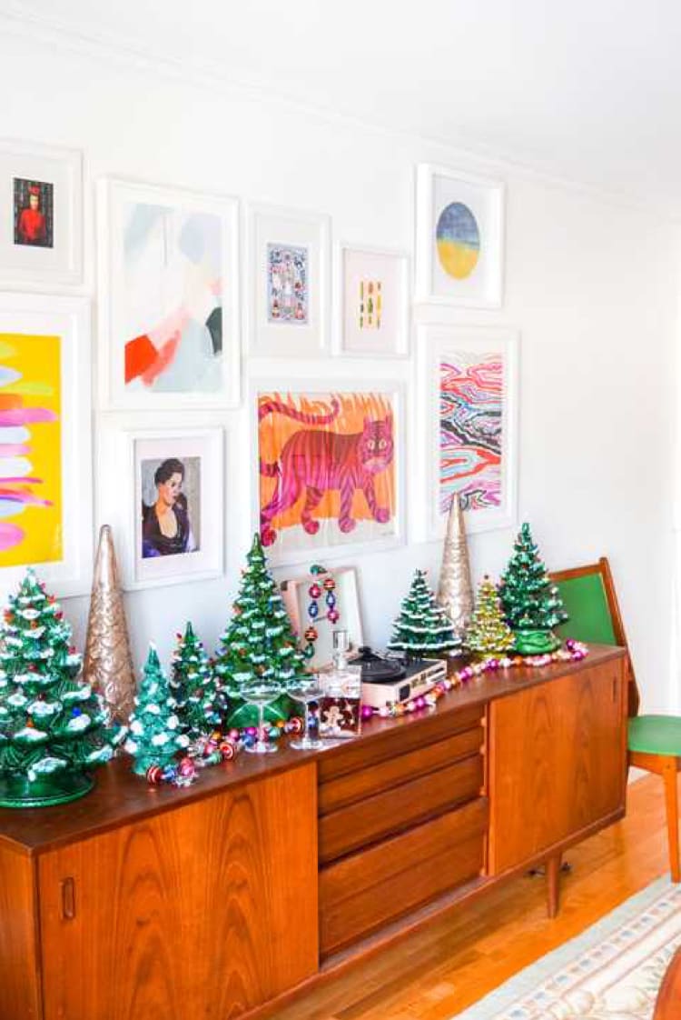 No space? No problem! We love how PBQfortwo’s Ariel Garneau used her sideboard to display an adorable collection of miniature vintage Christmas trees. Follow suit by arranging your own holiday heirlooms in a festive tableau.Courtesy Martyn Lawrence Bullard