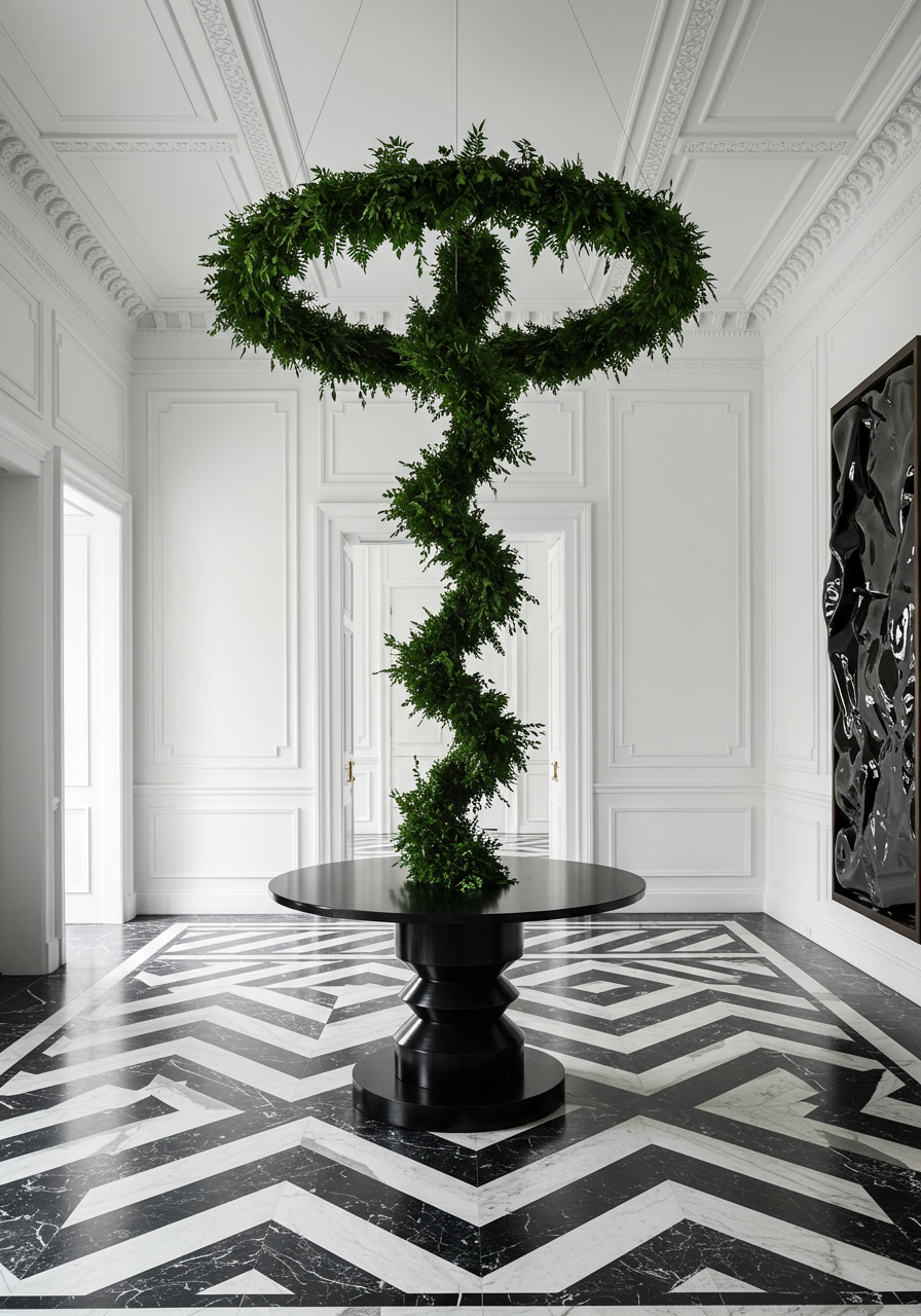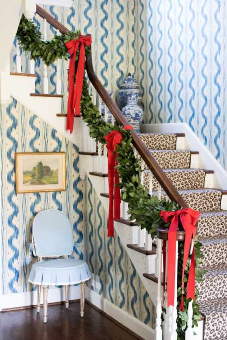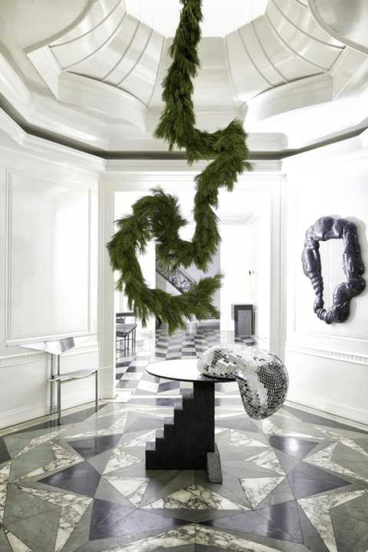 Entryways are a great spot to go “ham” for the holidays. And, if you’re blessed with a double-height lobby like style maven Kelly Wearstler, you can bring your Christmas decor to new heights by hanging a simple evergreen garland from the ceiling. And with a little wire, you can create an abstract, torquing look with signature drama, like Wearstler did here.Christopher Payne