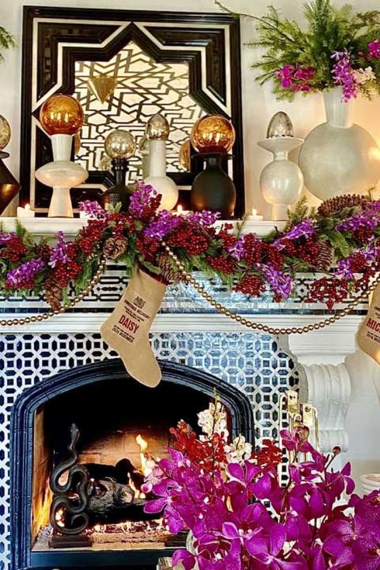 ELLE DECOR A-List designer Martyn Lawrence Bullard is known for being a bit extra when it comes to his decor (see his opulent California home), and the holidays are no exception. “I always love to incorporate as many natural elements as I can in my Christmas decor,” he tells us—especially fresh blooms, as seen here on his flower-festooned mantel. “For longevity I use orchids,” he advises. “When they have the little water containers on the bottom they can last easily two weeks in the tree or dressing the swags on your mantel.”Josh Yöung