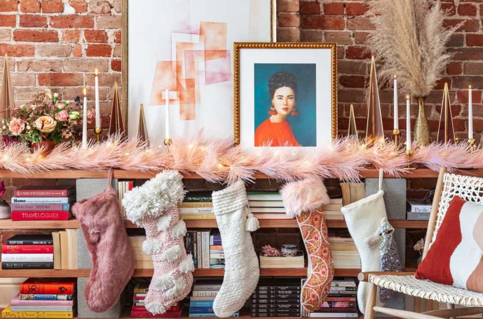 Just because red and green are the typical Christmas color palette doesn’t mean they’re your only options. Havenly’s Heather Goerzen shook up the status quo by filling this nook with warm pinks, creams, and oranges. The result is a fun, refreshing take on the classic palette.Kylie Fitts