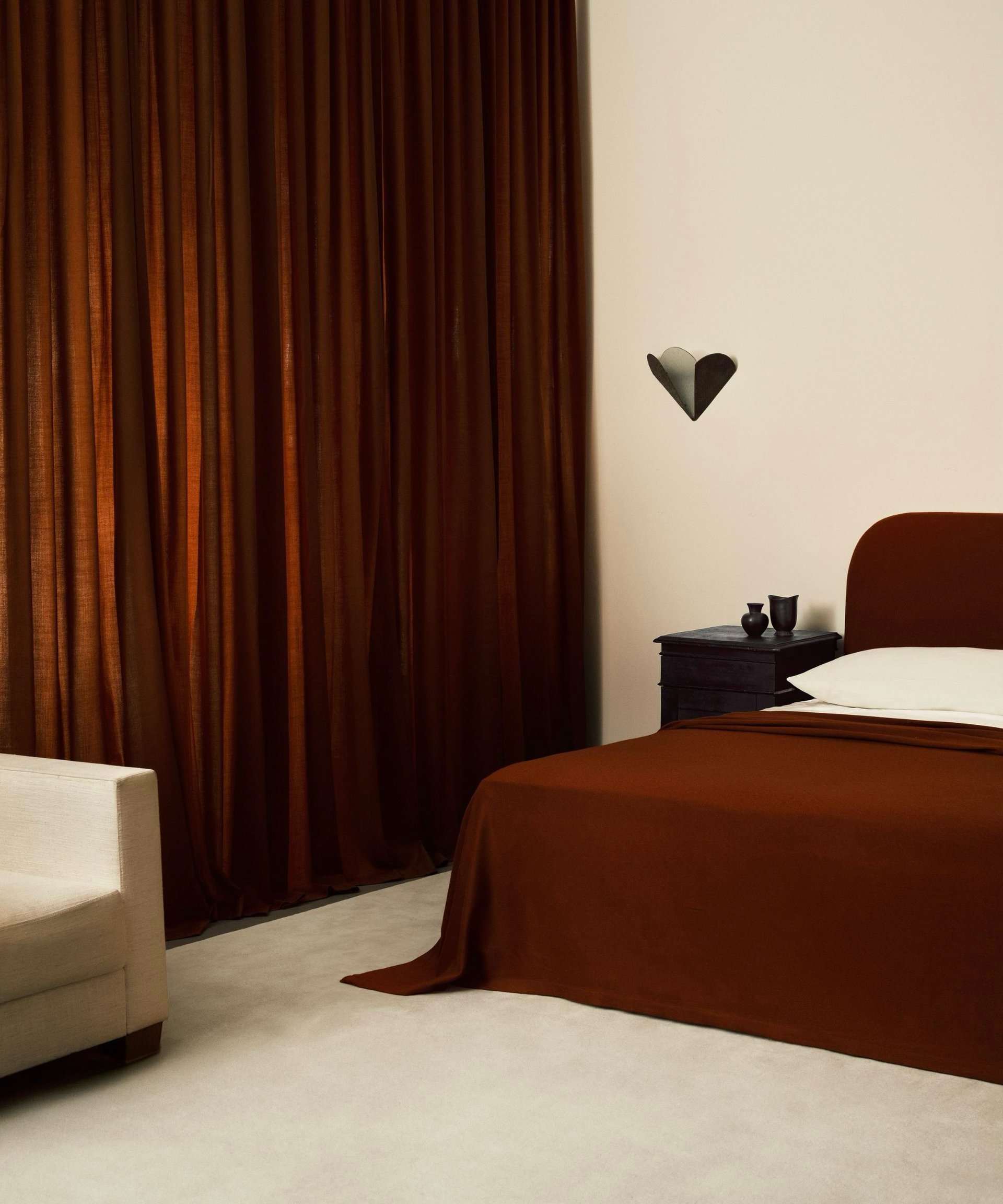 ‘My first rule of curtains is that they should be long to the floor and in the case of 100% linen curtains, even longer. If it’s an airy, bright feel that you want in the room, it has to be 100% linen. These curtains let the light dapple through, and give you privacy at the same time. They can be drawn back to almost nothing during the day, and if you want to tie them, they are so light, you need only use a lovely ribbon.'