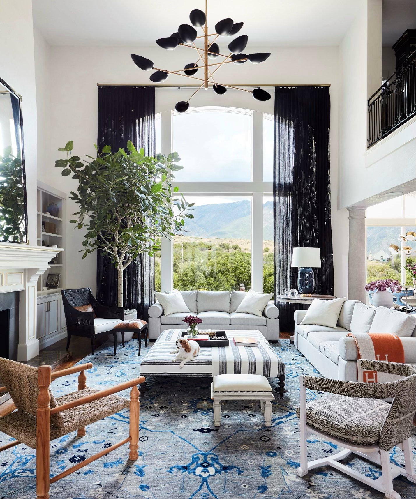 In this room by Alice Lane Interior Design, the double-height curtain ideas were put together with fabric imported to Utah from the UK, which was then hand-painted by artist Tyler Huntzinger. Getting bespoke curtains can, however, be a simpler process.