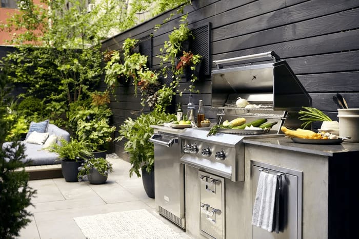 And just as our indoor kitchens have become the hub of the home in recent years, with an ever-increasing attention to style and decor, and ever more demanding expectations for appliances and gear, these days we want our outdoor cooking spaces to be just as equipped, efficient, and stylish. Whether that means a chic, compact built-in grilling station on your condo balcony, a backyard patio with a wall of cooking and prep space, or a full-blown luxury outdoor kitchen that's part of an entertaining oasis complete with a fully equipped kitchen, dining and lounge spaces, depends on your space, needs, and budget.
