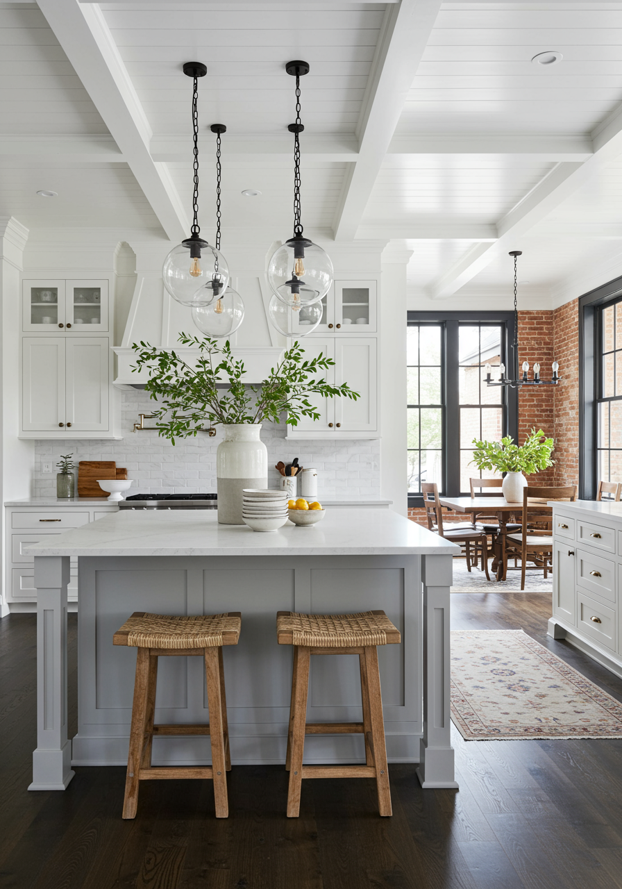 Lighting is the jewelry of the home. You don’t have to live with the bad, brass lighting fixture that came with the house. Its very easy to change out pendants, sconces and chandeliers. When working with any lighting, make a paper size replica by taping paper together till you arrive at the height and width of the proposed fixture. Hang it our hold it up in the spot to make sure it works. Often you need to go bigger than you realize. Its worth the exercise! You never want a light that is too small that will look undersized in the space. If anything, go big.