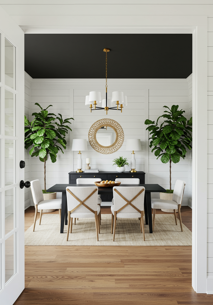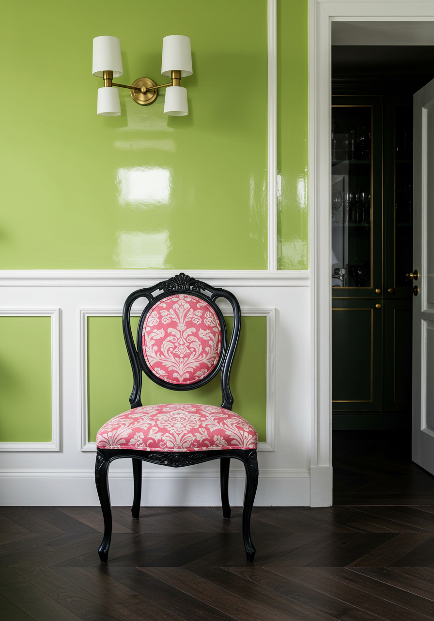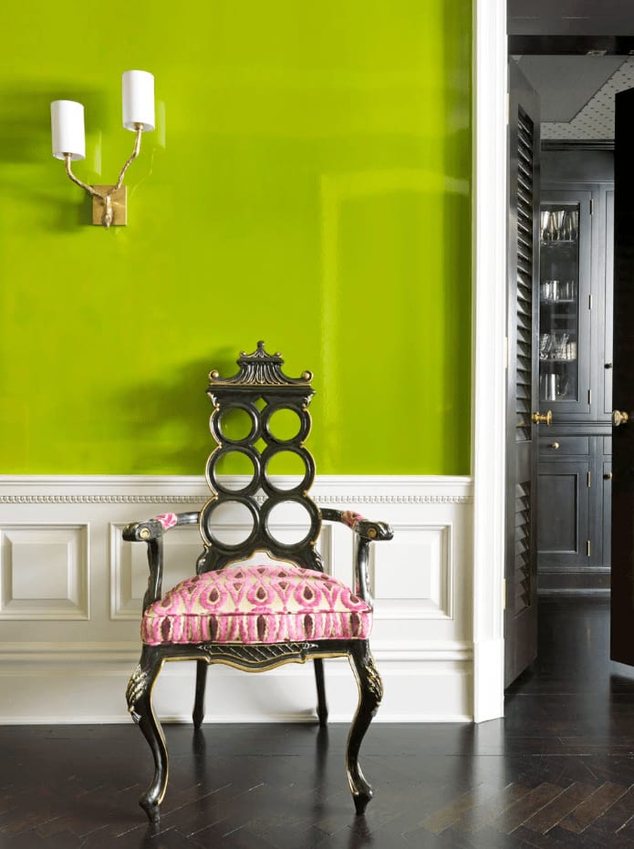 You might decide to try this trend via wallpaper in the powder bath, a bold wall color in the home office, laundry room, or dining room, or simply by adding a few colorful accents to the living room.