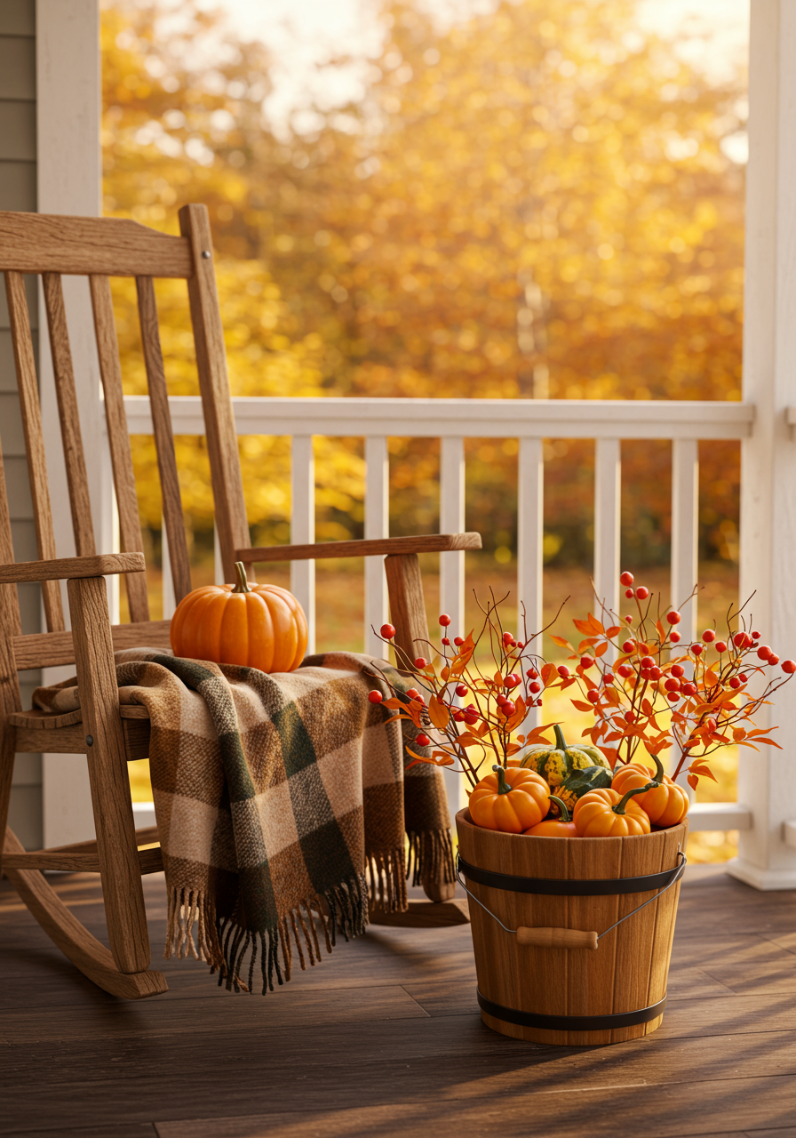 There's no better spot to relax on a crisp fall day than a rocking chair (and under a plaid blanket, no less!) with hot apple cider in hand.
