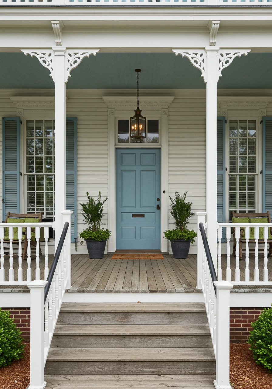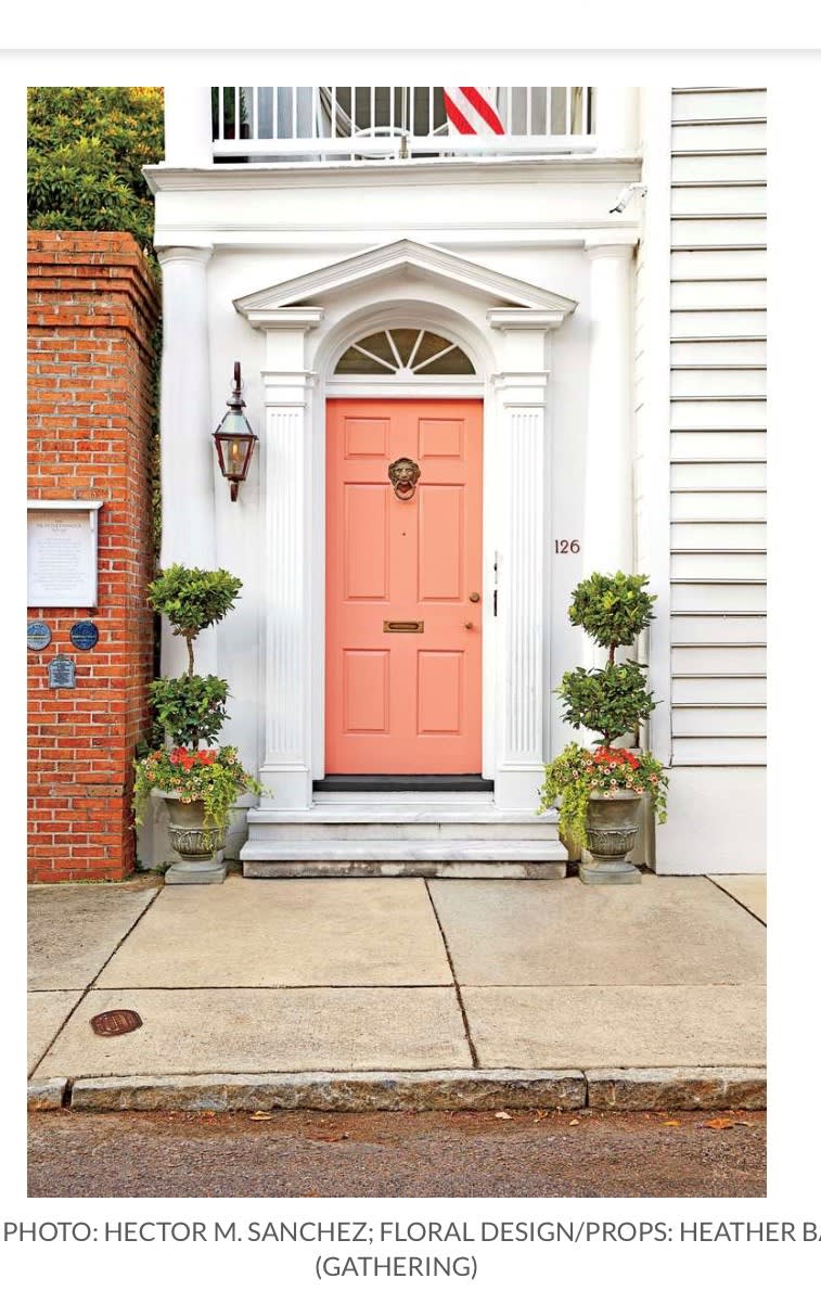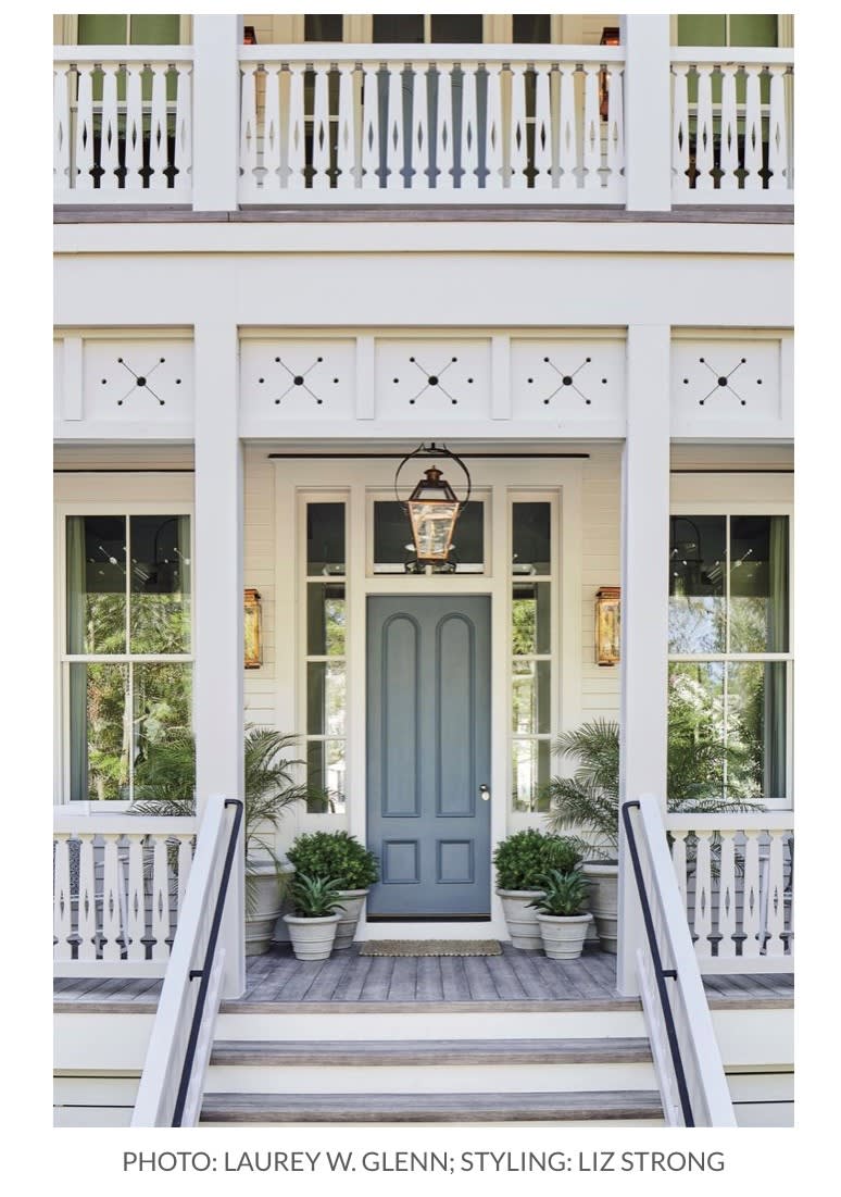 This cheerful blue looks good anywhere, especially on a white exterior or lighthearted Dutch door. It promises an instant smile from neighbors as well as curious house hunters. As a complementary balance, double up on pots. Keep the plantings equally loose and casual with baskets and mossy terra-cotta containers.