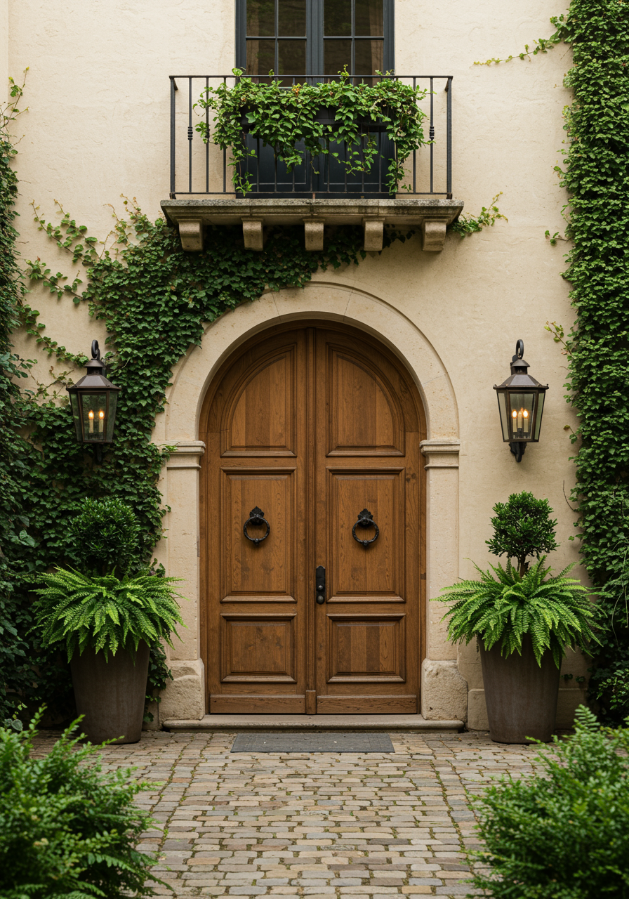 Don't force a painted finish on a beautiful wooden door. Try a rich stain instead that will bring out the wood's grains. Surround it with loose, lush green plantings to loosen up the stain's stately vibe.