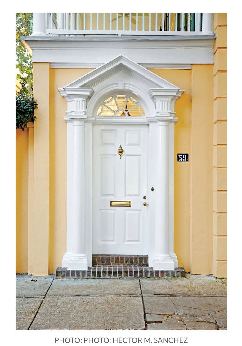 The uplifting power of a fresh coat of white paint never gets old. Well-known facts aside, white also neutralizes a door with elaborate carving or brightens up a dark exterior. If you're going for the white-on-white exterior palette, choose a slightly deeper white for the door than the shingles to give it some dimension.