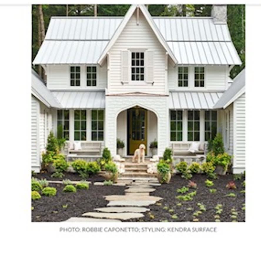 This citrusy color is best for a simple white cottage. A small dose of a daring hue, such as this surprising chartreuse tone, creates a dramatic look-at-me-now presence. Make it more modern by selecting house numbers in a sans serif font style to keep this cottage grounded in the present.