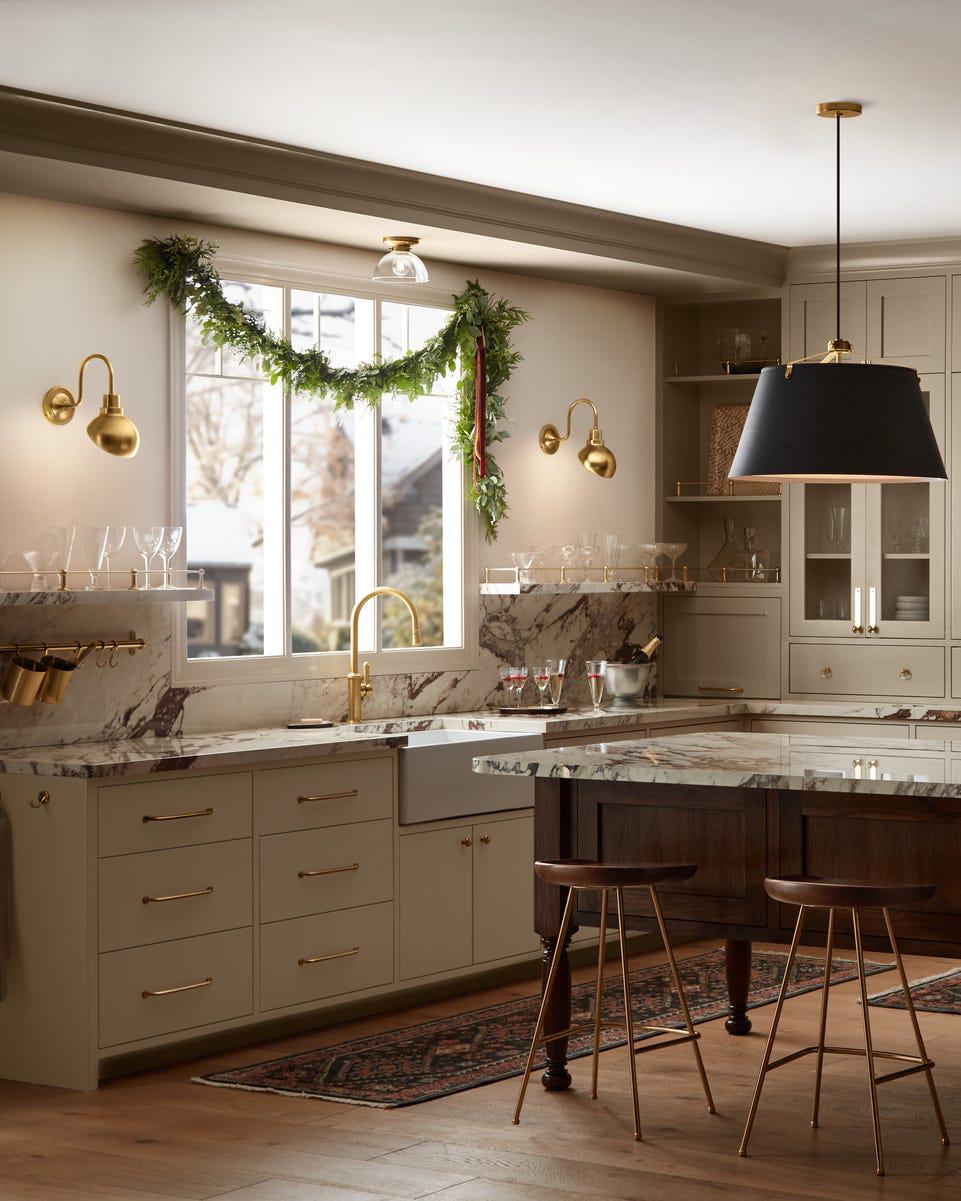 fes vity to one of the home's most func onal spaces. The garland, draped across