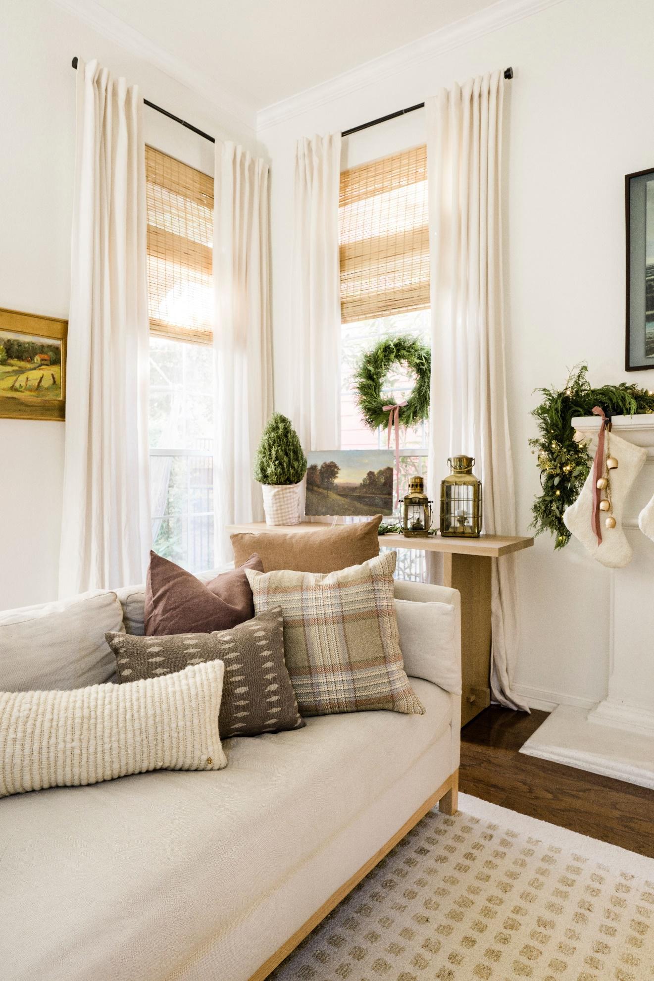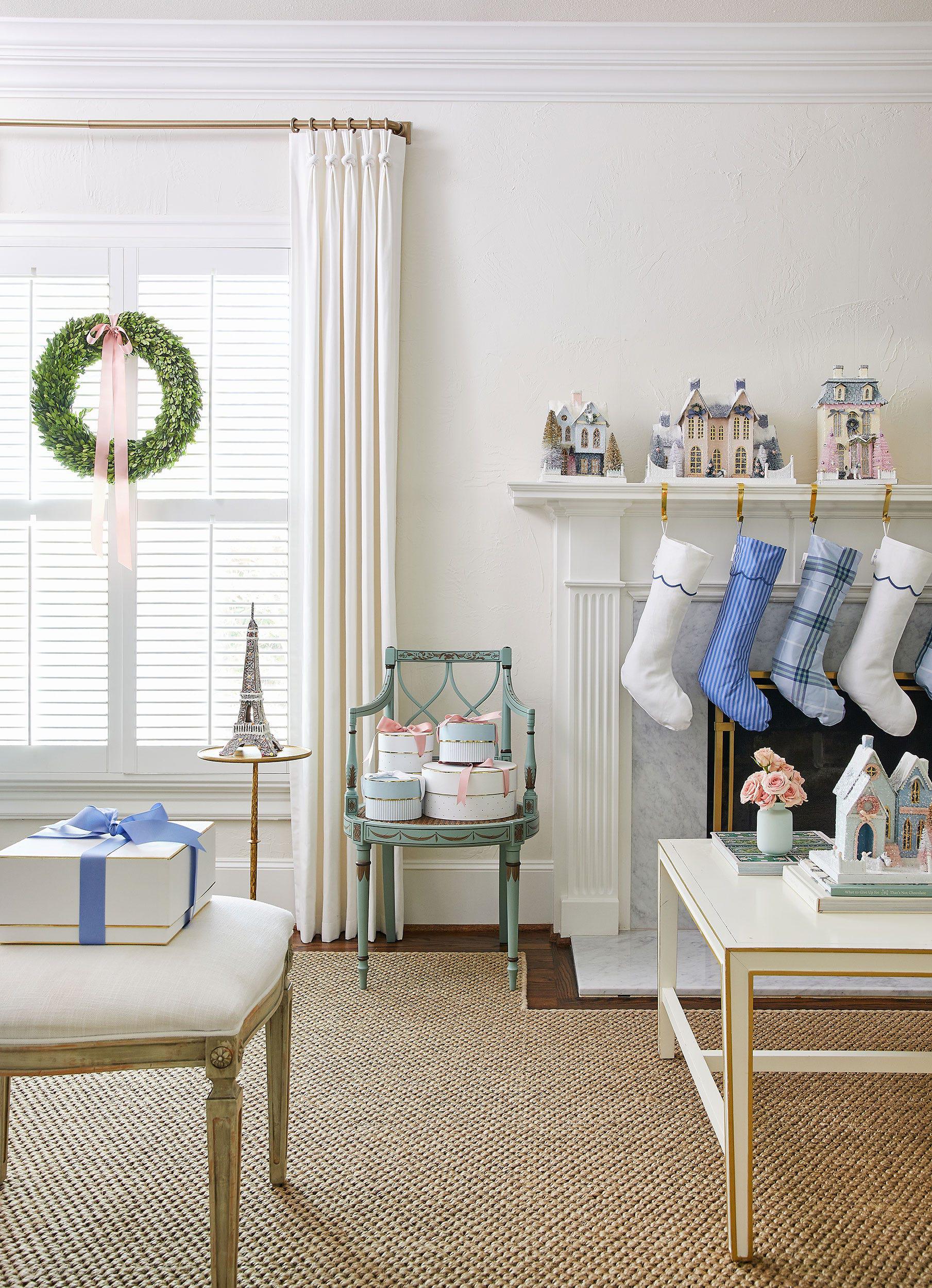 There’s an art to ribbon-draping, and the designer behind this festive living room