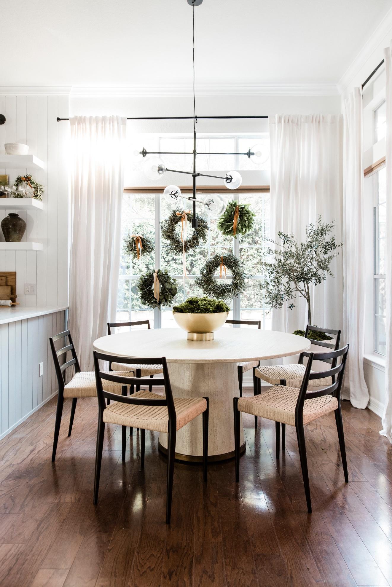 Marker strung a charming set of evergreen wreaths across the room’s backyard