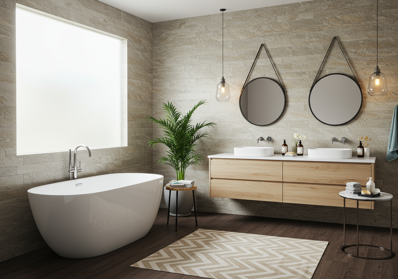 Like the Roman baths of centuries ago, stone continues to add a richness to the modern bath. Retiling a bathroom is a messy and expensive project, but you can change the look of your bathroom with peel-and-stick tiles.