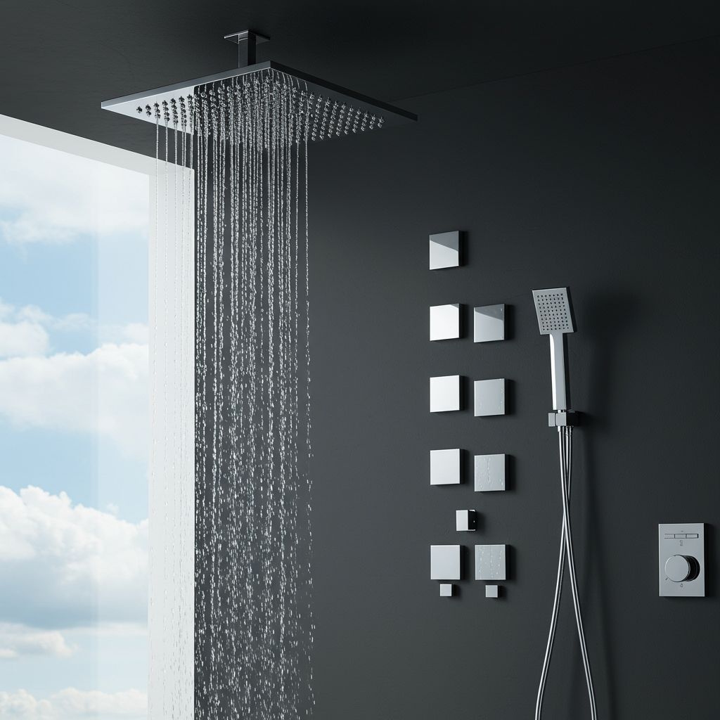 Available at The Home Depot; $50.13. The shower configuration above is no longer compliant in CA due to water restrictions, but some options can work to create that car wash affect. Talk to a professional to discuss what will meet CA compliant requirements.