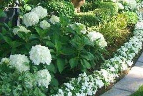 WHITE SNOWBALL HYDRANGEA, AFRICAN-LILY AND WHITE IMPATIENS