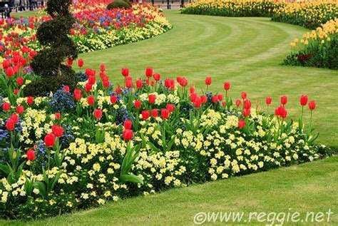 You should try to make things look natural. In nature, you will never see plants lined up in parallel lines or circles. Your flower beds may be perfectly round or square, but your plants should follow a more natural pattern.
