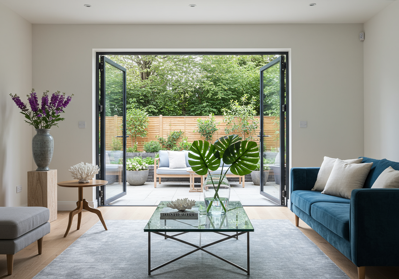 When thinking about Panoramic doors there are 2-3 basic styles which will affect your final decision. If you have unlimited space you need to think about where the doors will slide into or in front of when they are open. Typical each door section is 5’ wide so if they slide into a pocket, you will need 6-7 feet on one side of your door space for the pocket. An alternative option are doors that stack as you slide them aside or stack and swivel against a wall. This does not require the pocket for the doors to slide into, but you still need the space to stack the doors along one side. Aesthetically, the pocket option is the best, but the stacking option can look very nice as well, especially the swivel and stack style.