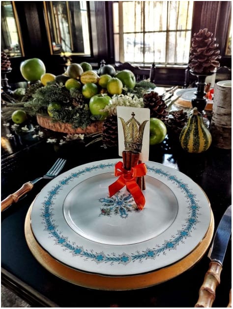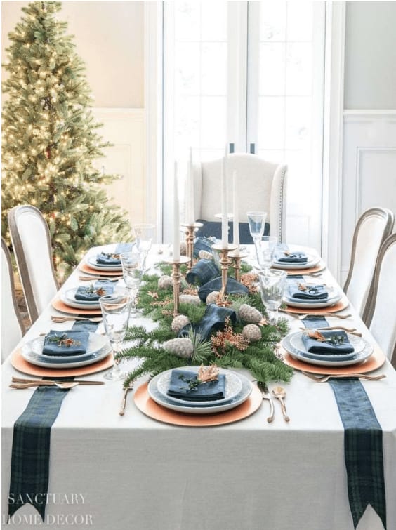 To give your red-and-green palette a rest, add some wintry blues to your Christmas feast like this stunning Sanctuary Home Decor vignette.