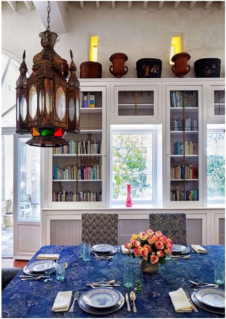 The Syrian glassware and vintage plates in the kitchen of this Lebanese mountain home are enough to transform any room. However, interior designer Maria Ousseimi broke up the all-blue design scheme with cream and orange roses that prove that a pop of color is sometimes all you need for a finishing touch.