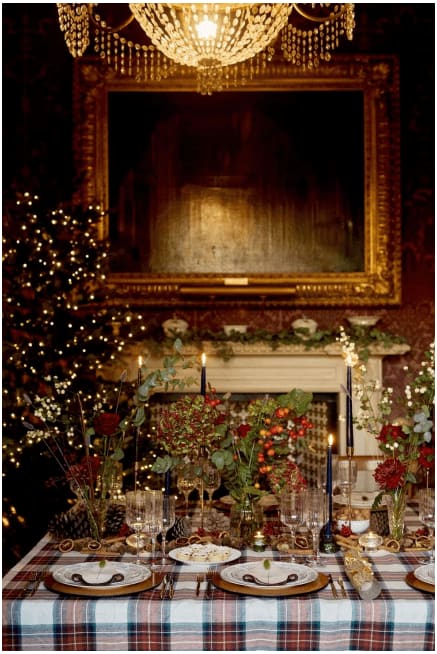 If you’re really getting into tablescaping for the long haul, think like a business—Preskett Mobbs’s business, in fact. “We have a huge range of accessories and little touches to rent,” she explains. Similarly, you too can invest in a range of accessories each season that become beautiful forever pieces that can be mixed and matched over the years. “We like to encourage our customers to ‘buy the classics and hire the seasonal trends.’” she adds. Case in point: This classic tartan display is made even more festive with an assemblage of mismatched crystal vases that, when combined, are seamlessly synchronized.