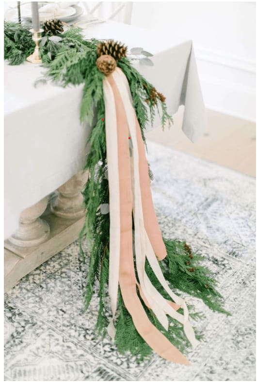 If you really want to take your garland to the next level, add some streamers and pinecones like Monika Hibbs did for her latest holiday look for some extra drama.
