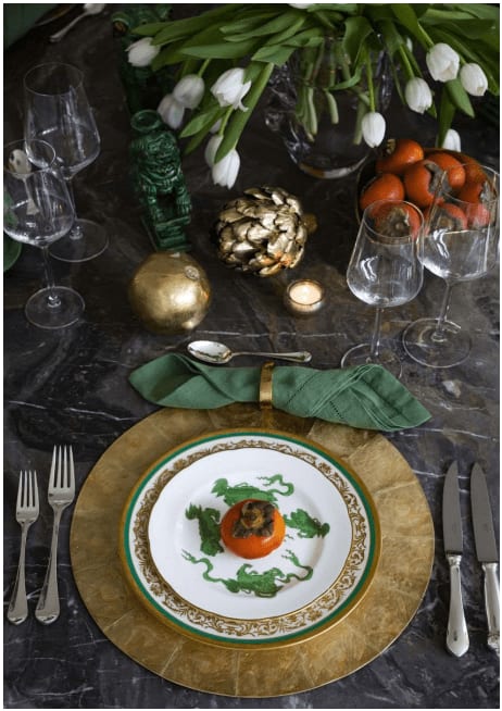 If your household fete continues well into January, take notes from Chandos Interiors’ Dodson Epley, whose Chinese New Year table display is as classy as it is playful. Bedecked with a mini stone dragon statue, gilded vegetables, and fresh plump persimmons, the ELLE DECOR team is hoping we get an invite.