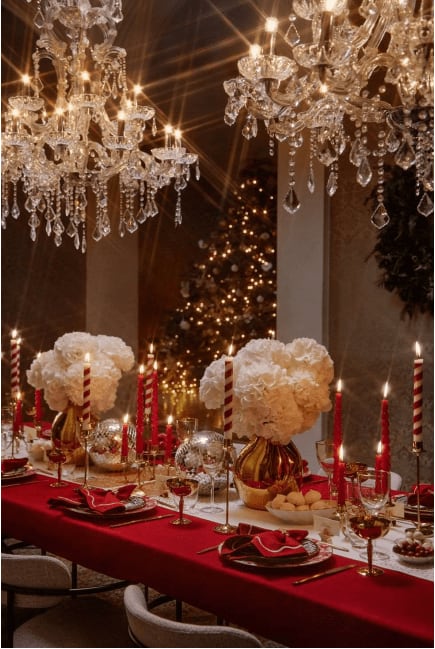 Are you hosting this year? Take a few notes from the luxury British tablescaping service Maison Margaux’s Louisa Preskett Mobbs, who holds that Christmas season is an ideal time to release your inner maximalist when it comes to the size and quantity of centerpieces you bring to the table. “It’s a time when we gather friends and family around tables perhaps more than any other time of year,” she tells ELLE DECOR. “We really have fun with it.”
