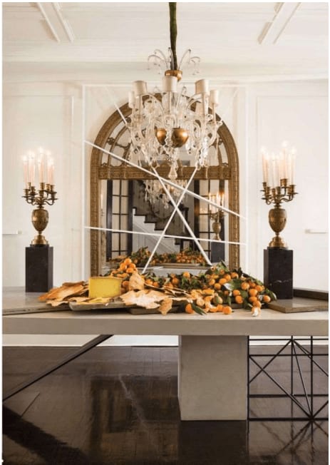 You don’t need a silver fork to enjoy good food, the saying holds, but a well-styled tabletop and a showstopping centerpiece will certainly add a certain sweetness to any bite. In this tabletop moment from Darryl Carter’s townhouse in Washington, D.C., marble plinths support a bounty of satsumas and French cheese. Instead of a humdrum cheese tray, he placed the tempting spread atop marble slabs that were remnants from a renovation he did years ago, which he says he’d always imagined to be large serving surfaces. “This tablescape is decadent for decadence’s sake,” the ELLE DECOR A-List Titan explains. “The intention was to pile delicacies in a carefree and inviting manner to encourage guests to comfortably gather and help themselves rather than a stilted, formal place setting.” Can we get an invite?