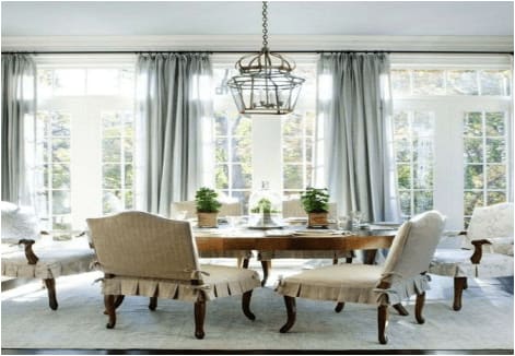 Looking to go beyond the predictable holiday themes? “Sometimes an arrangement of moss and lichen from the yard can do the trick,” says designer Liz Williams. Zhuzh it up with a glass cloche and velvet ribbon and your guests will feel right at home. We’re loving her use of vertical space in this airy dining room, which makes room for the countless trays of food that are sure to come out of the kitchen. As for how to make space in your stomach…we’ll let you worry about that.