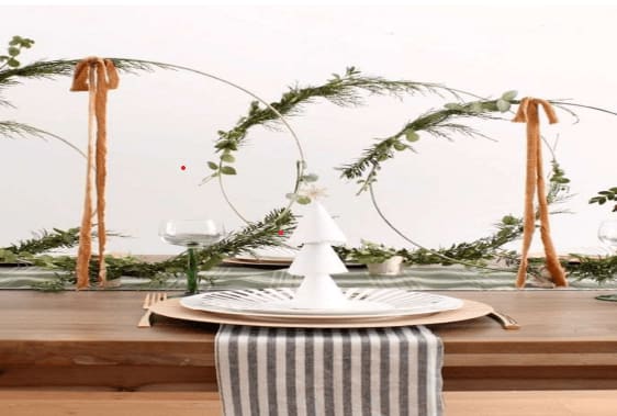 More often than not, Christmas decorations skew traditional. If you want to give your centerpiece a modern flair, try adding brass hoops like these Harlow and Thistle pieces, in varying sizes.