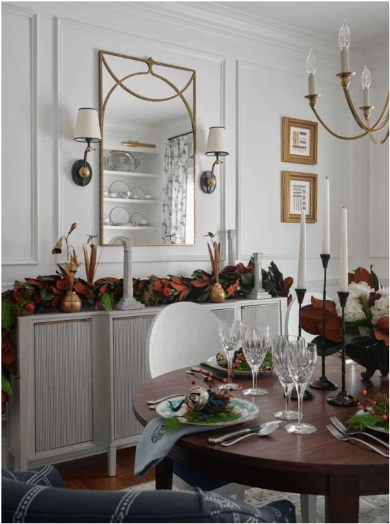 Want to give your garland a second life? Instead of draping it on your mantel or stair rail, layer it along your dining room table. For a setup that’s stylish and soothing, add a few tea lights to the mix. Lovely, Julie Blanner.