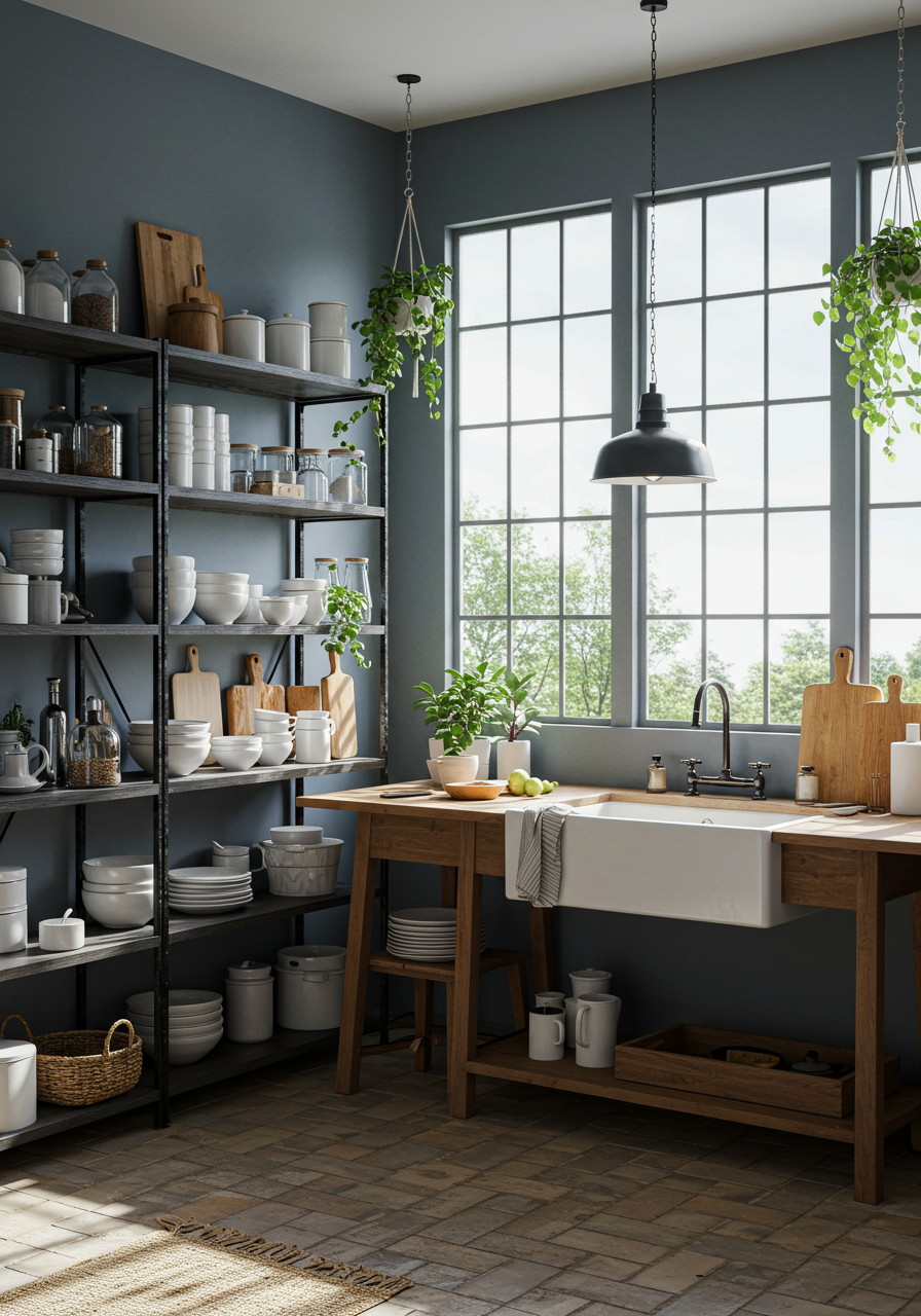 To get the right balance of style and substance be sure to mix both practical and decorative items. When considering what to put on open shelves in a kitchen, for example, mix up useful items such as serving bowls, mugs and recipe books with decorative items such as planters, artwork, and vases.