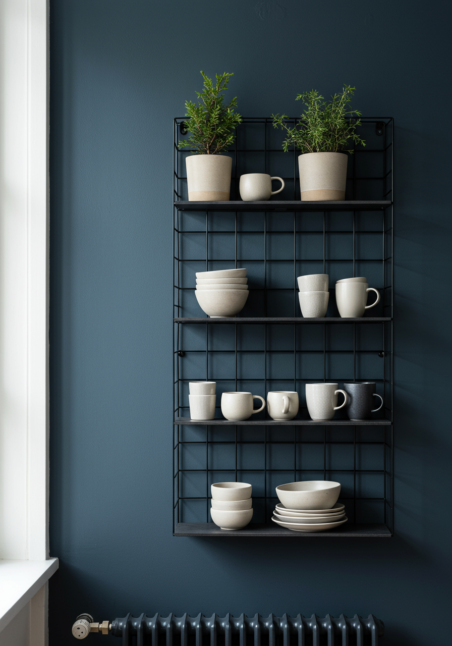 There are many different types of open shelf though, from the standard wooden plank with bracket, to industrial wire mesh, floating boxes and multi-functioning kitchen storage solutions. Choosing the correct shelf will depend on what you intend to house on them so you will need to factor in depth, load-bearing capacity and features.