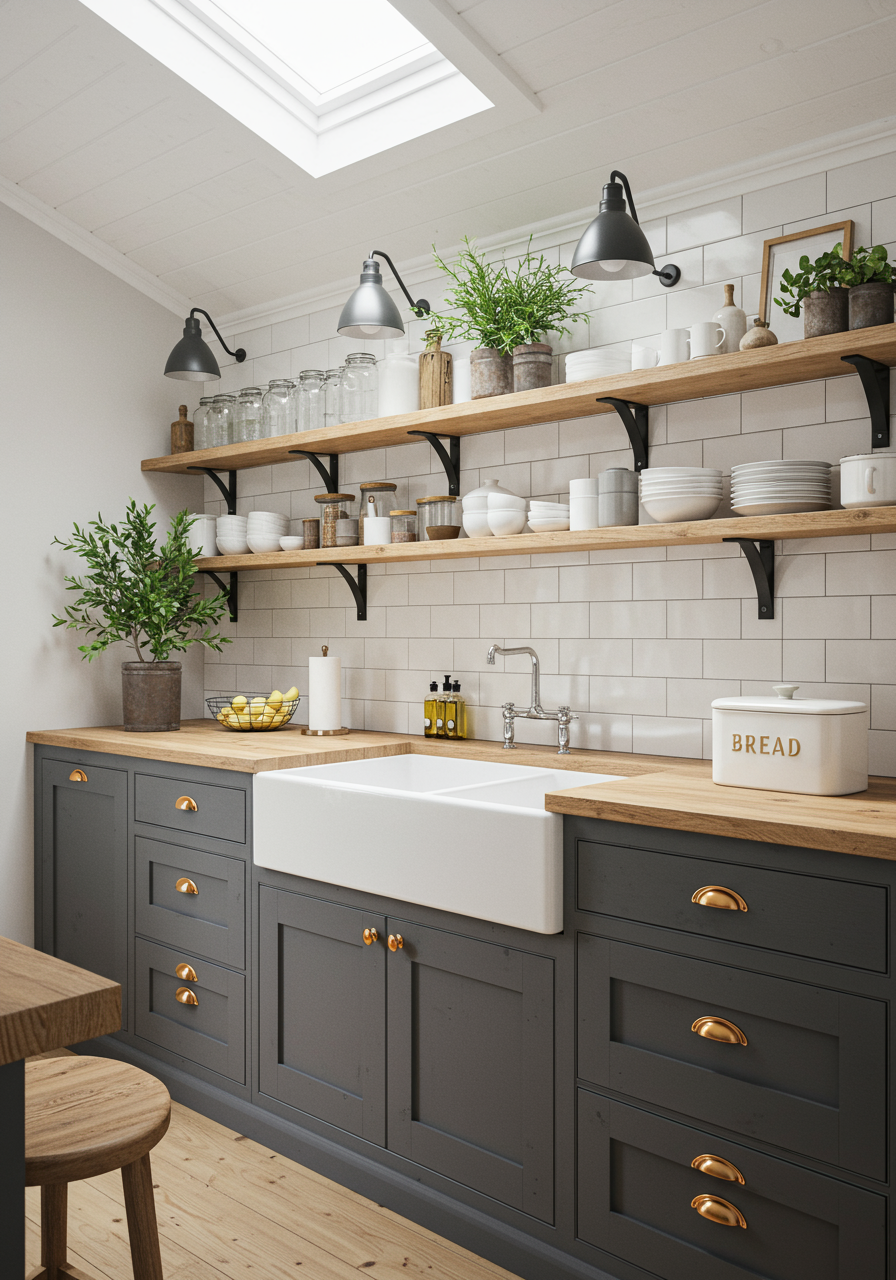 Replacing traditional wall units with open shelving will also make your space feel much larger and airier and so are great for smaller rooms or those with limited space.