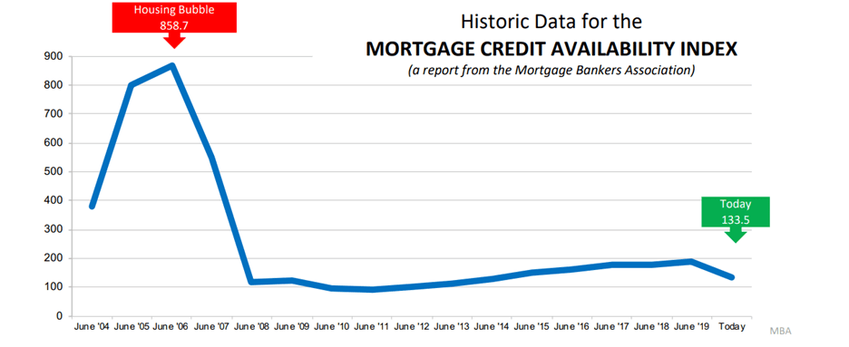As you can see in the Mortgage Bankers’ Association “Mortgage Credit Availability Index,” home loans were available to just about anyone. Today, the amount of mortgage credit available (in layman’s terms: the amount of home loans given out) is still at a safe, normal level.
