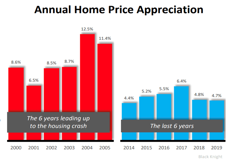 The price of homes is still high today, but it’s risen at a far more stable level.