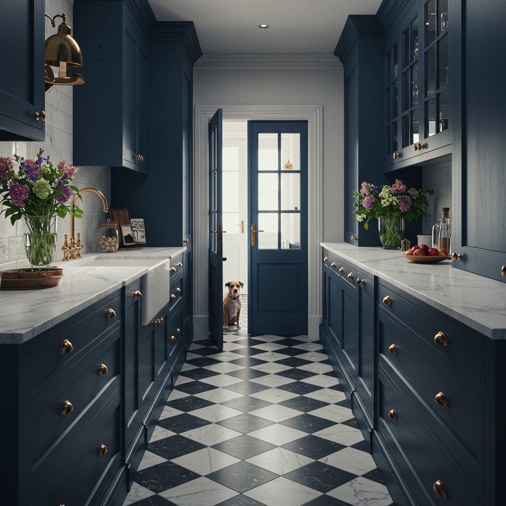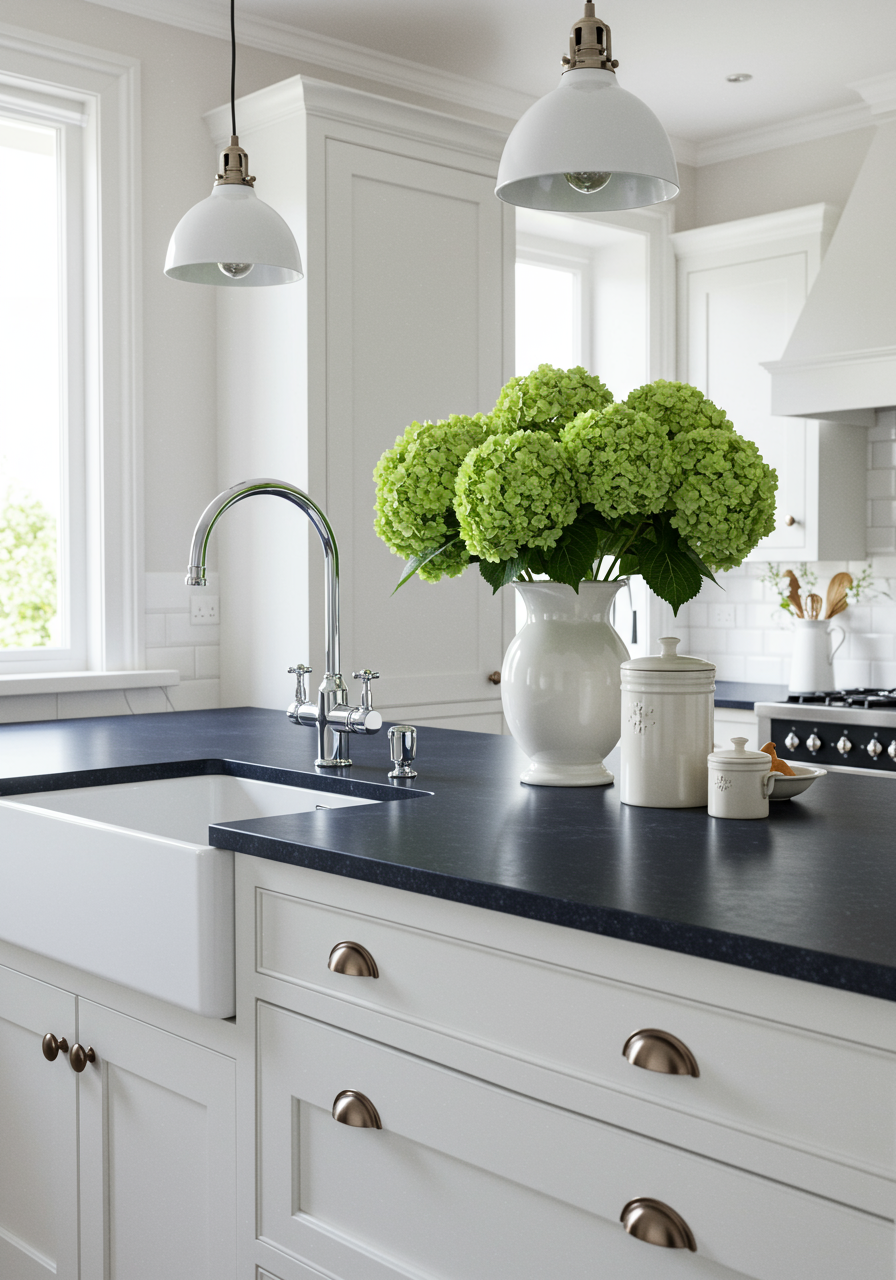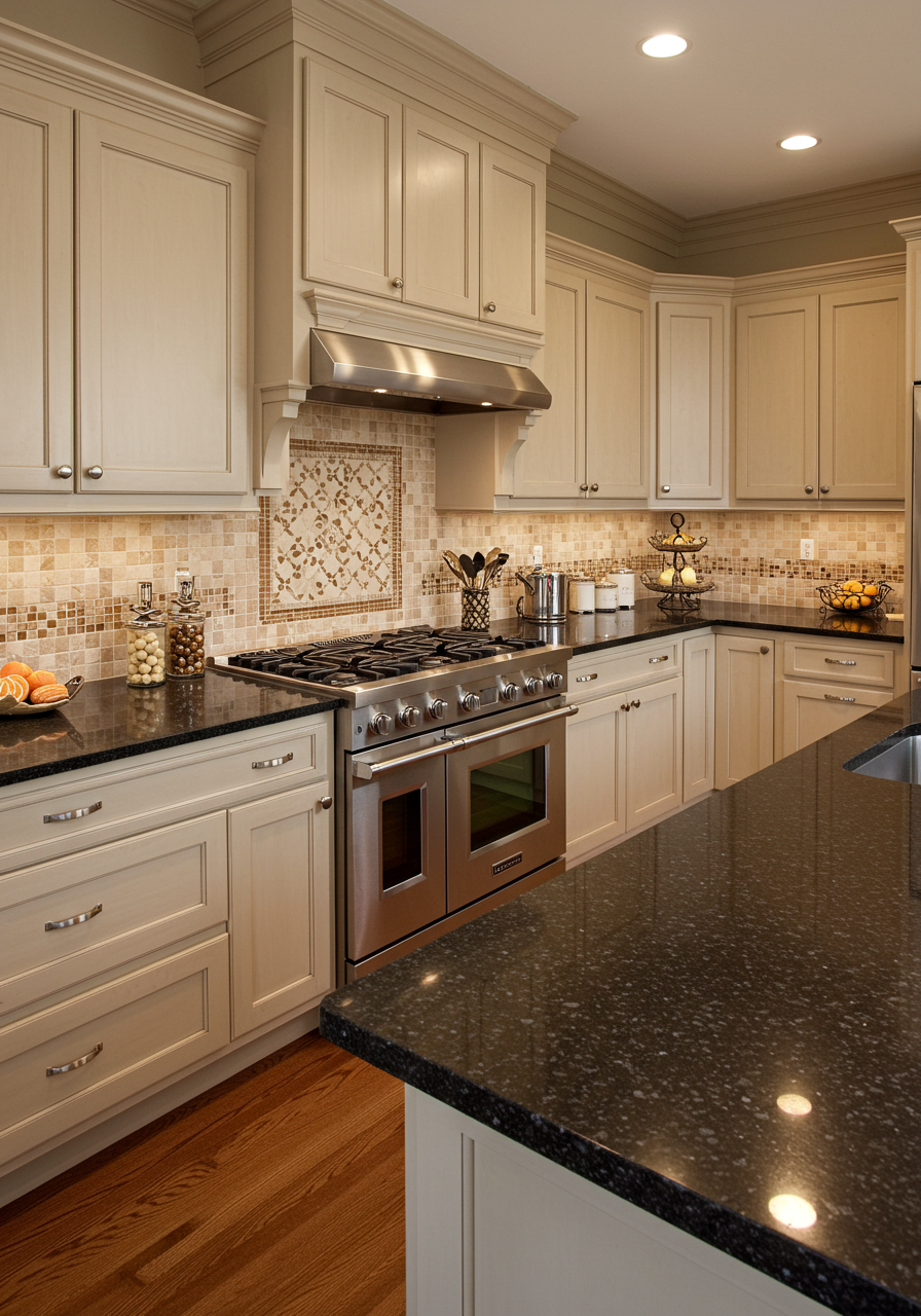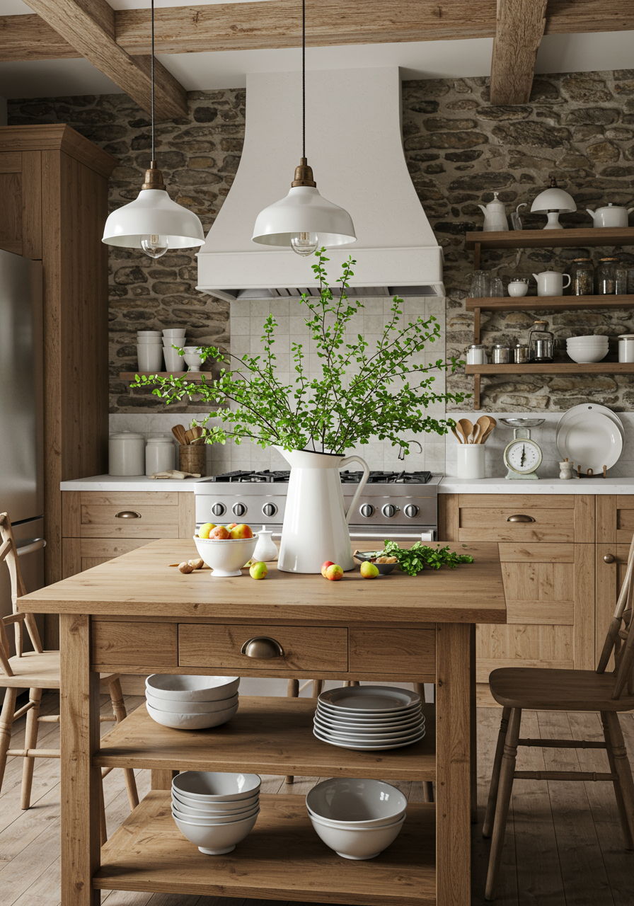 Below, I will incorporate the cabinet style and possibly the island with legs in black.