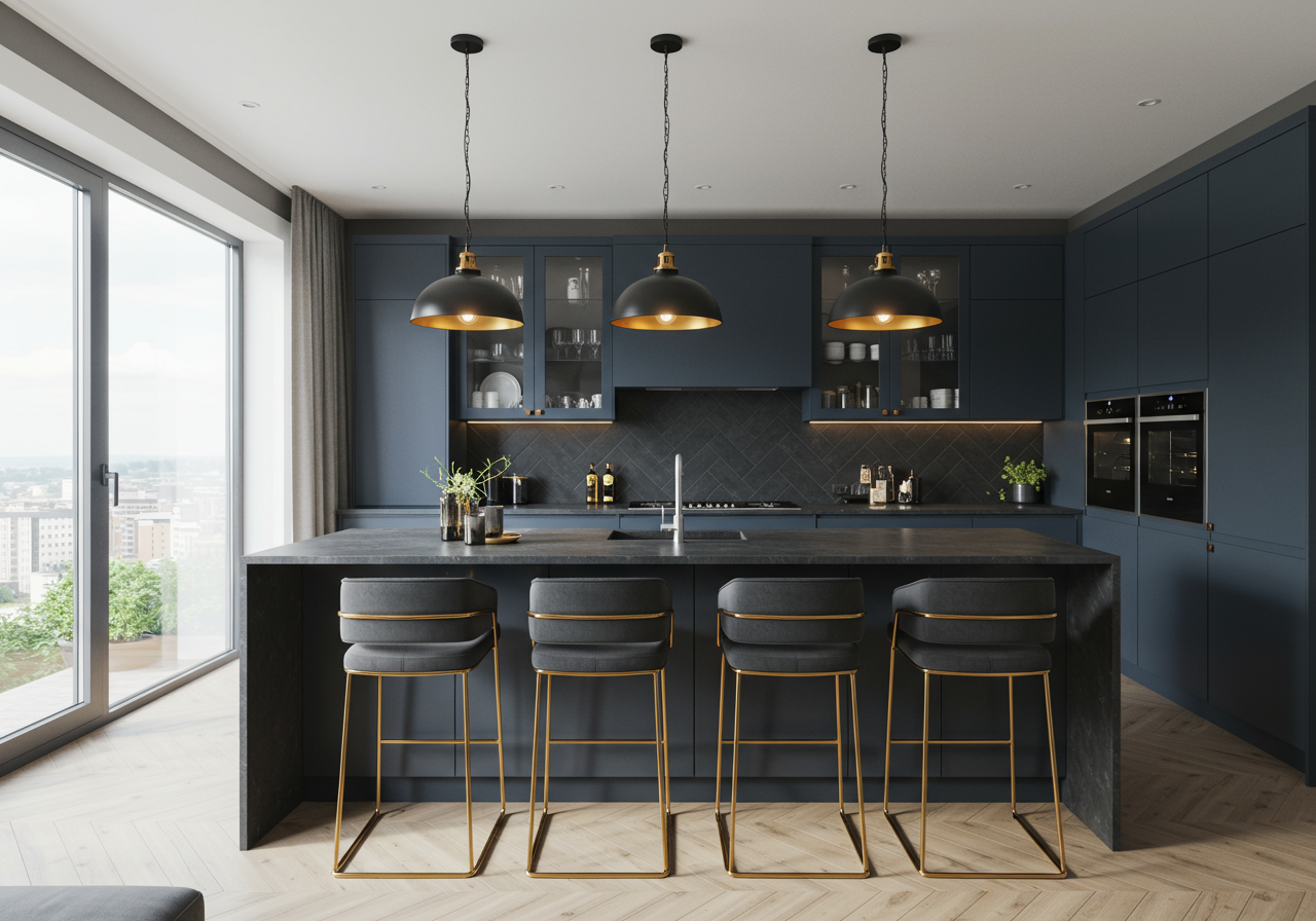 Dark kitchens radiate sophistication, elegance, and a strong personality. Make your dark kitchen stylish with interesting touches of warm colors and metallic elements.
