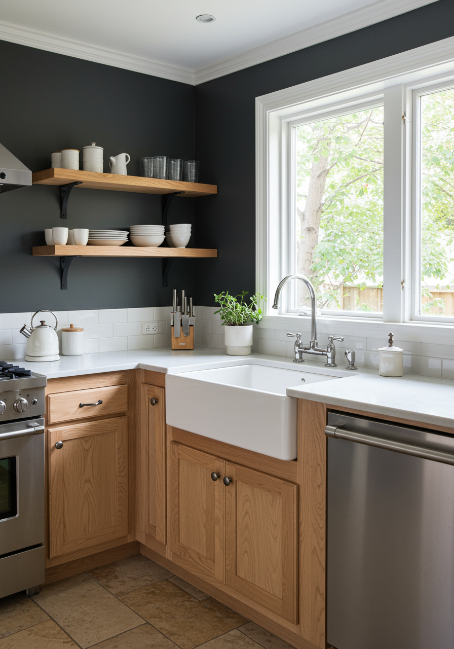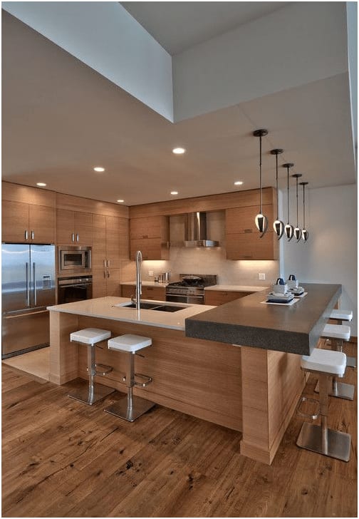 Not one to bother with paint. You can rely on the natural and beautiful wood grains to give your kitchen an amazing style. Balance off the busy patterns with natural stone and steel implements.