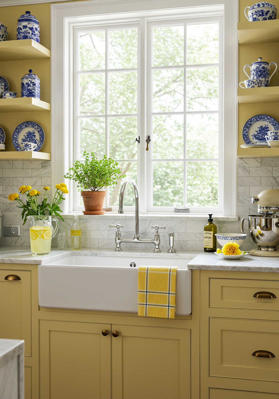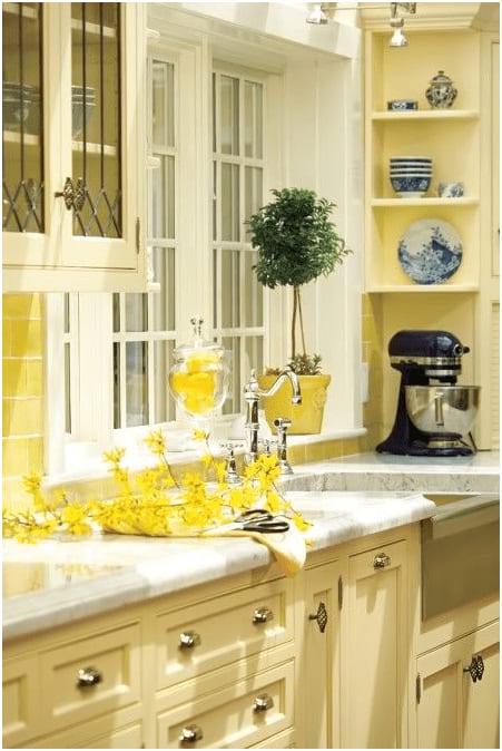 Cheery and light, yellow is perfect for your kitchen. Avoid the over-bright and tacky look by taming the yellow with touches of blue, green, or white.