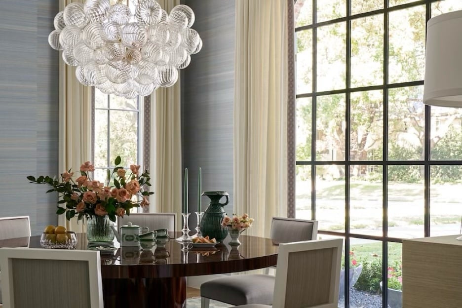 Don't let 2026 be the year of boring light fixtures. Artistic styles, such as this fun bubble chandelier in a dining room designed by Lindley Arthur, charm and delight.