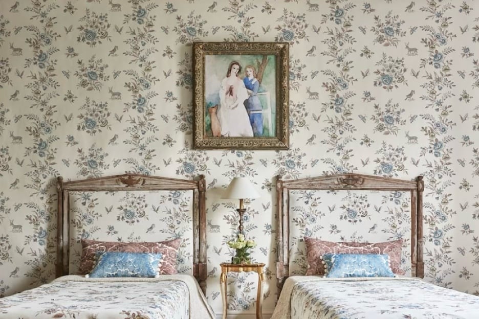 wallpapers alongside their fabrics, which makes it possible to truly pattern drench a room,” says Lindley Arthur of